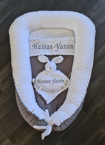 Gepersonaliseerd Babynestje Donkergrijs – Comfortabel & Stijlvol Kraamcadeau