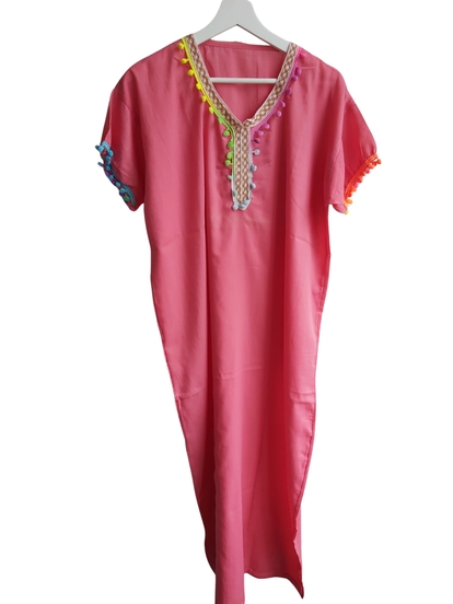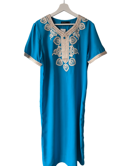 Marokkaanse huisjurk met mooi borduursel , heerlijk voor thuis of het strand.