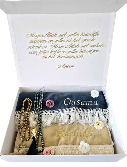 Een uniek huwelijk verdient een persoonlijk cadeau. Maak je eigen giftset op maat voor het bruidspaar! Kies zelf welke items je toevoegt.