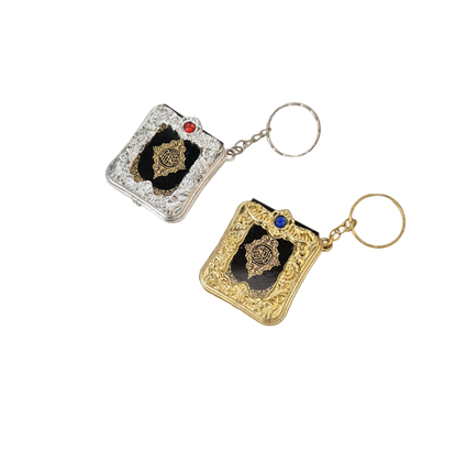 Draag de heilige woorden altijd dichtbij. Deze elegante sleutelhanger bevat een miniatuurversie van de Koran en is verkrijgbaar in goud- of zilverkleur. Een betekenisvol cadeau of een persoonlijk accessoire met spirituele waarde.