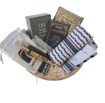 Dit prachtige islamitische Umrah cadeaupakket is speciaal samengesteld om een geliefde te feliciteren en te ondersteunen tijdens of na hun spirituele reis. Het bevat een mooi duaboekje, elegante 99 Namen van Allah kaarten, zachte zwarte zeep, twee stijlvolle sjaals voor hem & haar, een handige bladwijzer, een sierlijk “Umrah Mubarak” zakje én twee heerlijke musk geuren. Een betekenisvol, compleet en liefdevol geschenk dat perfect past bij deze bijzondere mijlpaal.