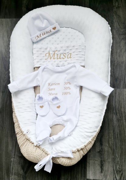 Super Leuk Kraamcadeau – Newborn Setje met Rompertje, Mutsje, Slofjes en Babynestje