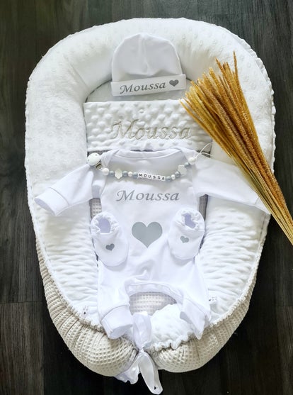Deze set is niet alleen praktisch, maar ook een stijlvolle en liefdevolle manier om een pasgeboren baby te verwennen. Het perfecte cadeau voor een babyshower of als welkom voor een nieuwe baby!