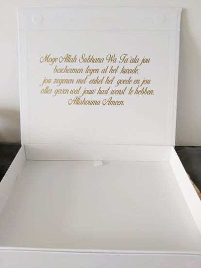 Bij ons vind je de ideale doos om jouw cadeau in te presenteren. Verkrijgbaar in drie stijlvolle kleuren: wit, zwart en goud. Of je nu een elegant, modern of feestelijk accent wilt toevoegen, wij hebben de doos die bij jouw geschenk past. Maak het extra bijzonder door een persoonlijke tekst toe te voegen en jouw cadeau krijgt een unieke, persoonlijke touch.