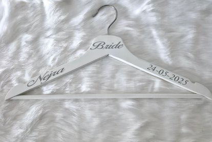 Maak de grote dag extra bijzonder met deze elegante kledinghanger voor de bruidsjurk. Perfect voor de ‘getting ready’-foto’s en een prachtige herinnering voor later.