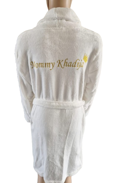 Heerlijke badjas voor een mom to be met de naam Khadija erop
